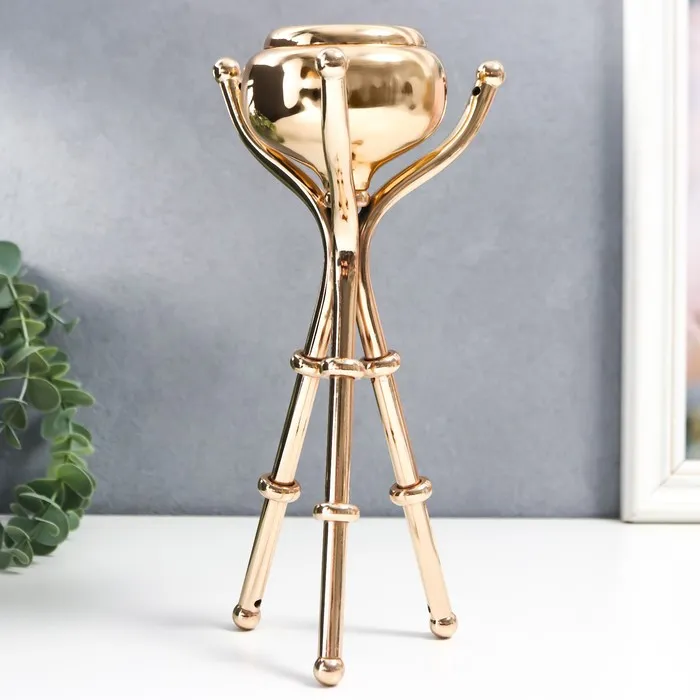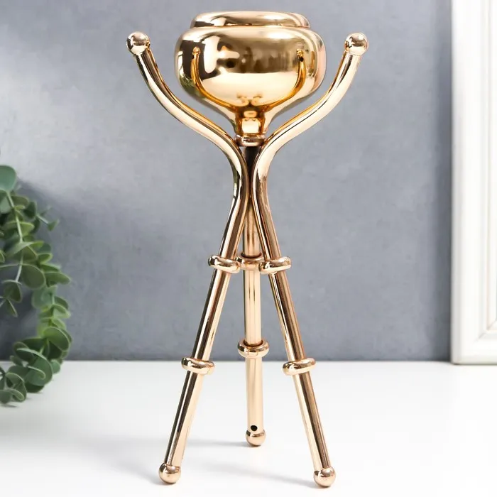 Подсвечник металл на 1 свечу "Тренога с куполом" золото 24х13х13 см