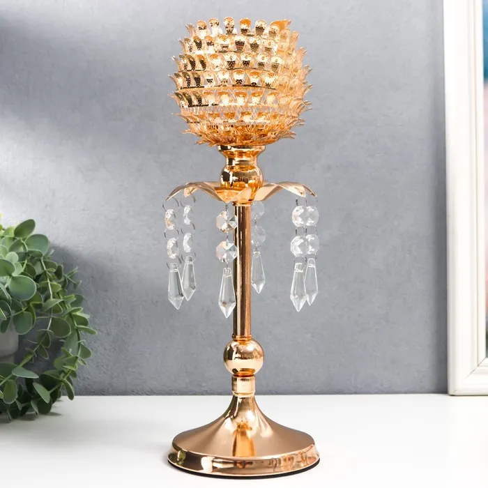 Подсвечник металл на 1 свечу «Цветок чешуйчатый», золото, 32×11×11 см — Характеристики