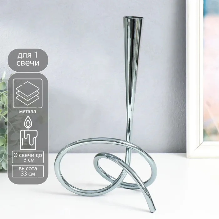 Подсвечник металл на 1 свечу "Виньетка" серебро 17х13х33 см — Характеристики