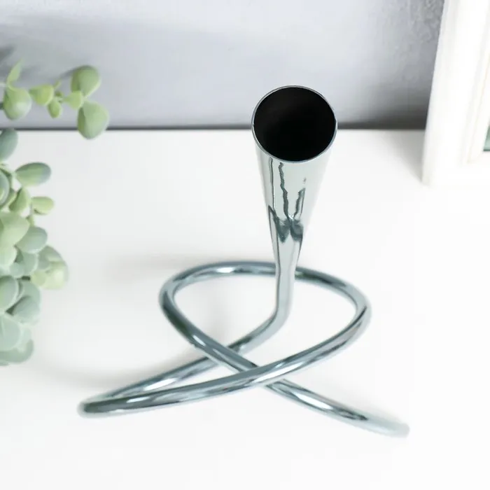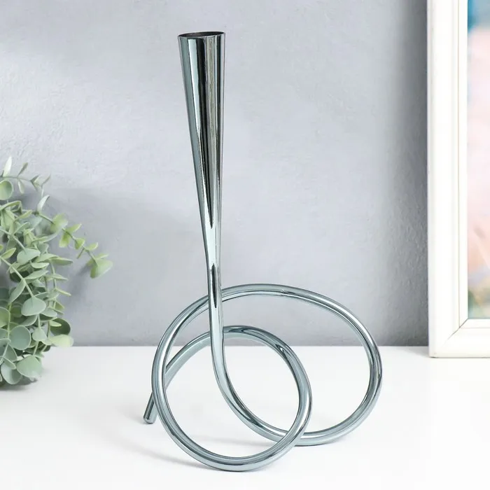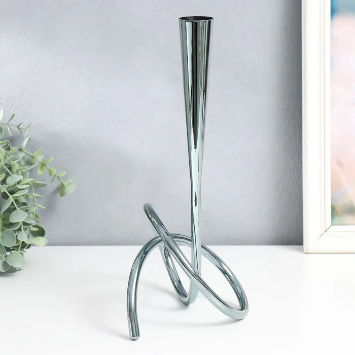 Подсвечник металл на 1 свечу "Виньетка" серебро 17х13х33 см