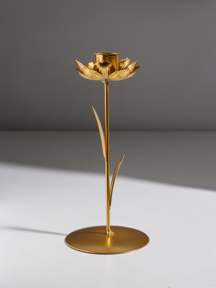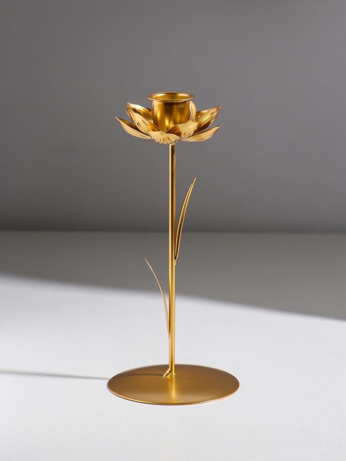Подсвечник металл на 1 свечу "Жасмин" золото d=2,5 см 9х9х20,5 см — Характеристики