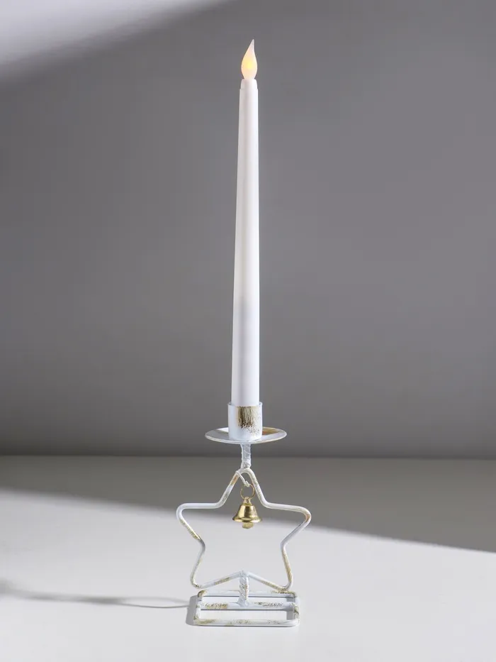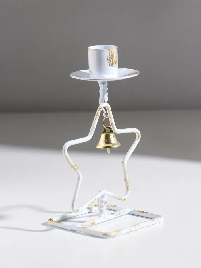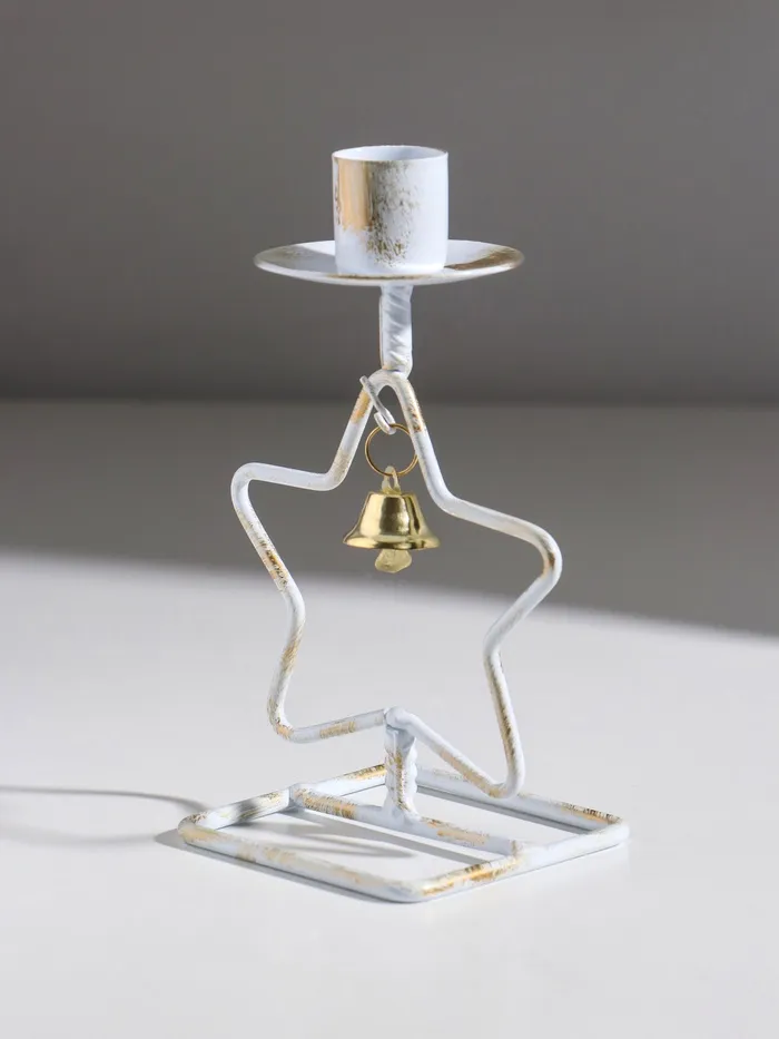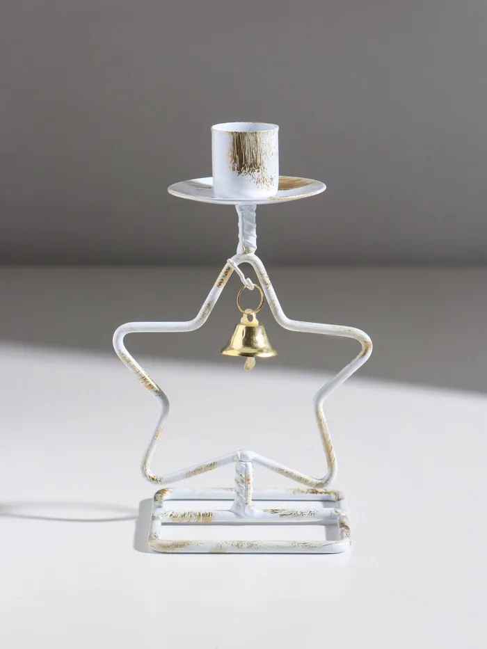 Подсвечник металл на 1 свечу "Звезда с колокольчиком" белый с патиной d=2,3 см 9,3х7,4х17 см 10875