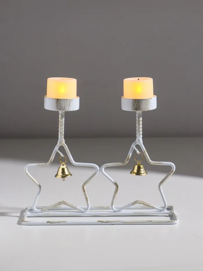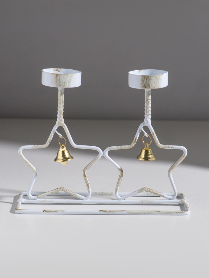 Подсвечник металл на 2 свечи "Две звезды" белый с патиной d=5 см 18,5х7,3х14,8 см — Характеристики
