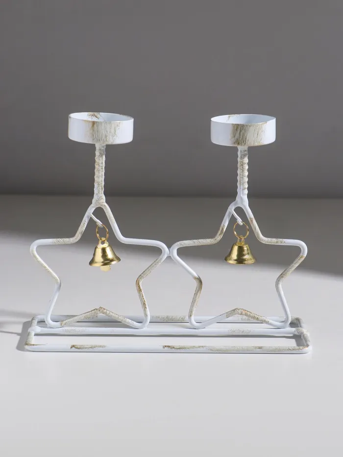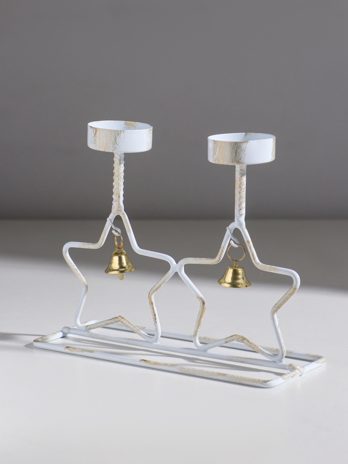 Подсвечник металл на 2 свечи "Две звезды" белый с патиной d=5 см 18,5х7,3х14,8 см