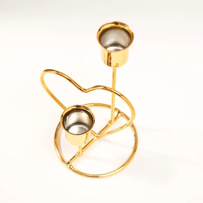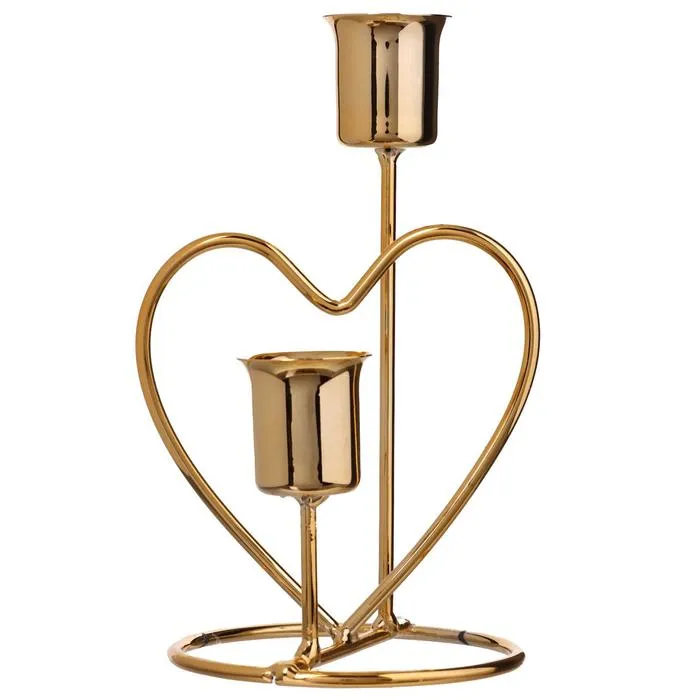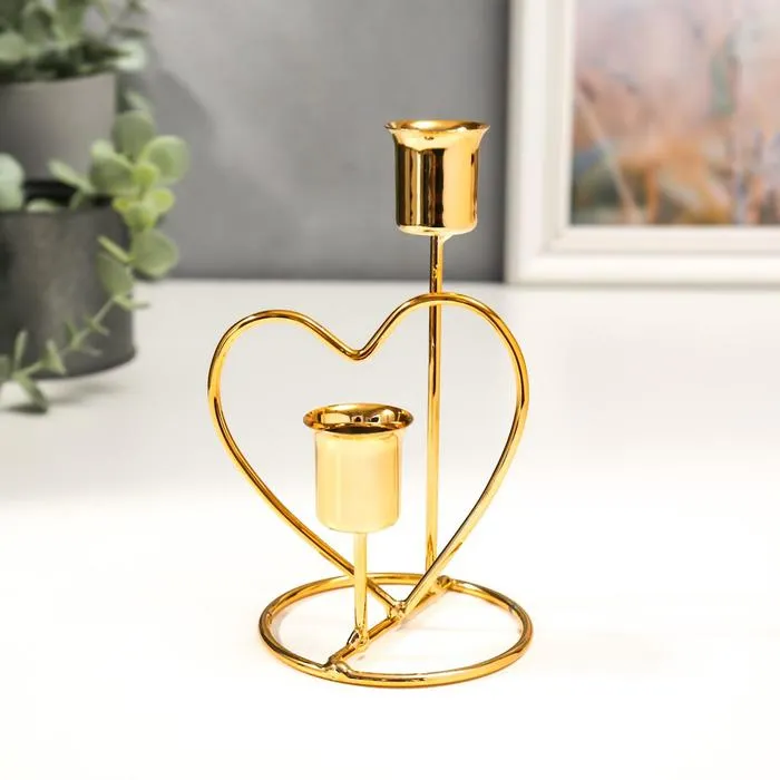 Подсвечник металл на 2 свечи "Сердце" d-2,5 см золото 17,5х10х8 см — Характеристики