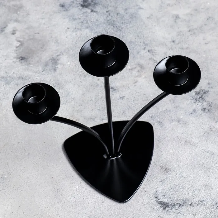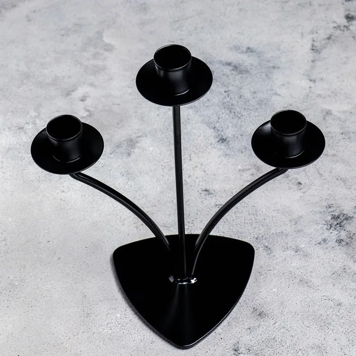Подсвечник металл на 3 свечи "Диез", 10,5х27 см, черный