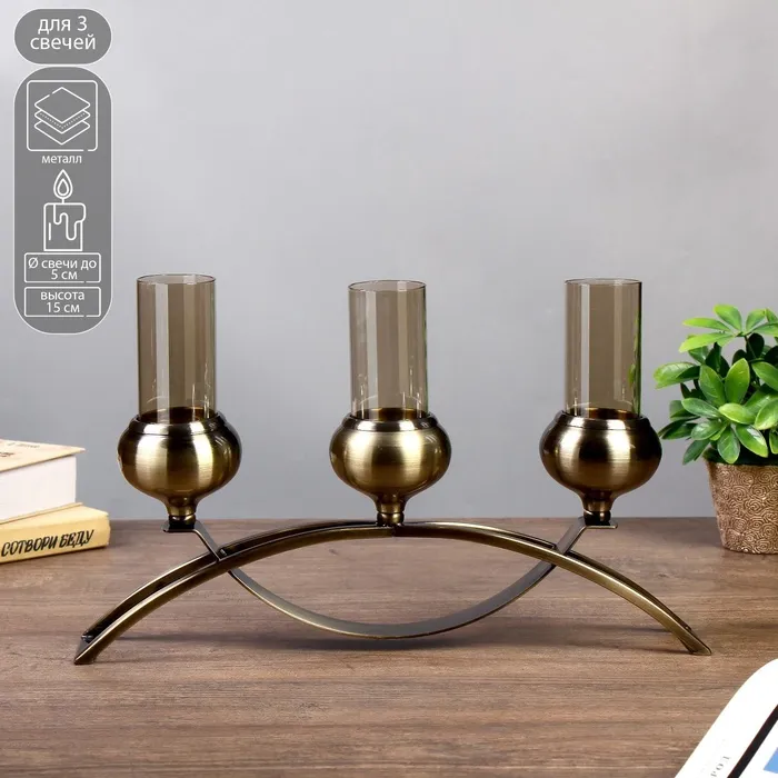 Подсвечник металл на 3 свечи "Диез", 10,5х27 см, черный — Характеристики