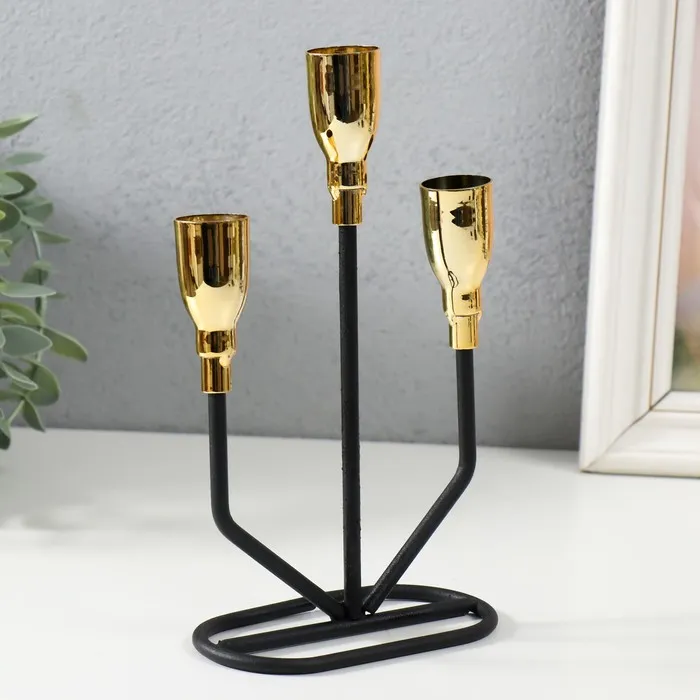 Подсвечник металл на 3 свечи "Голиаф" чёрный с золотом 12,9х5,8х19,3 см — Характеристики