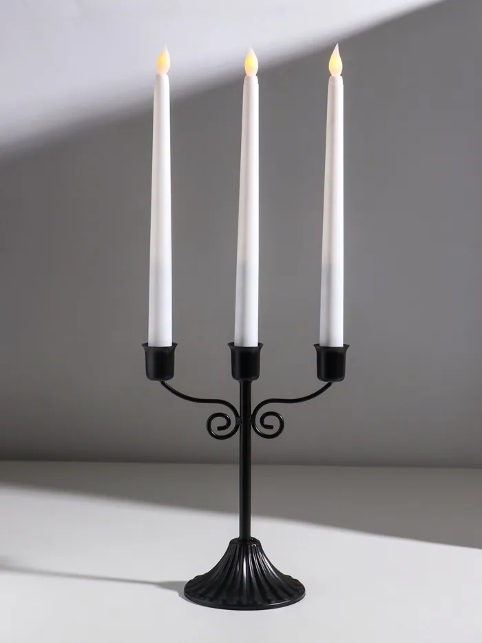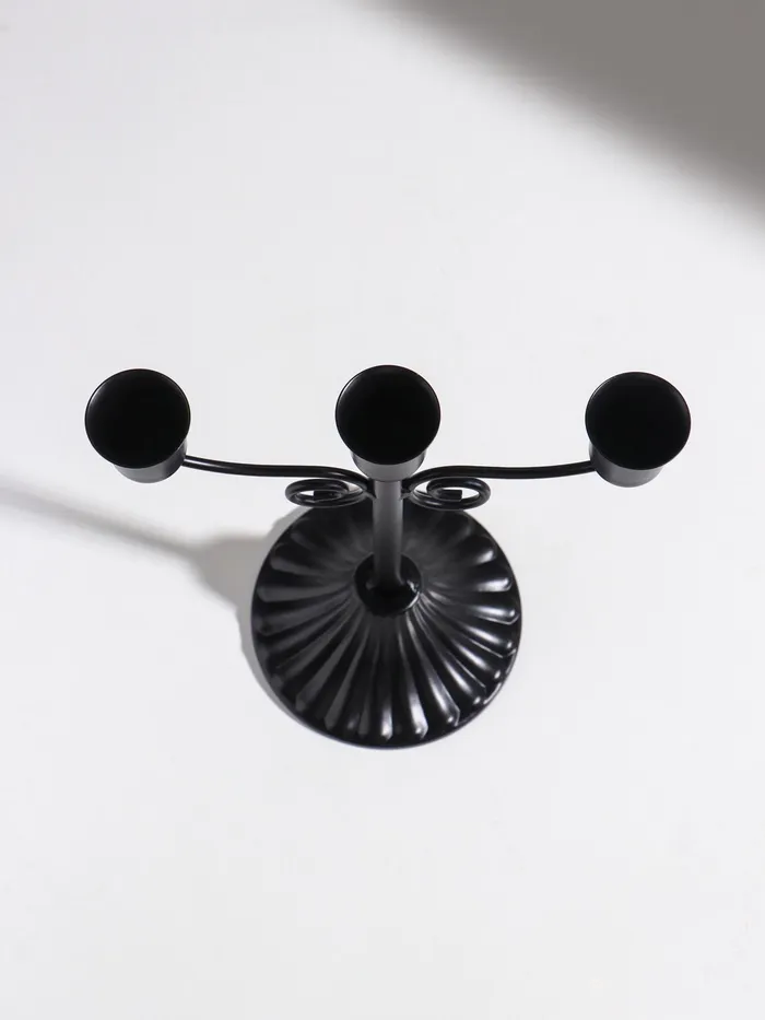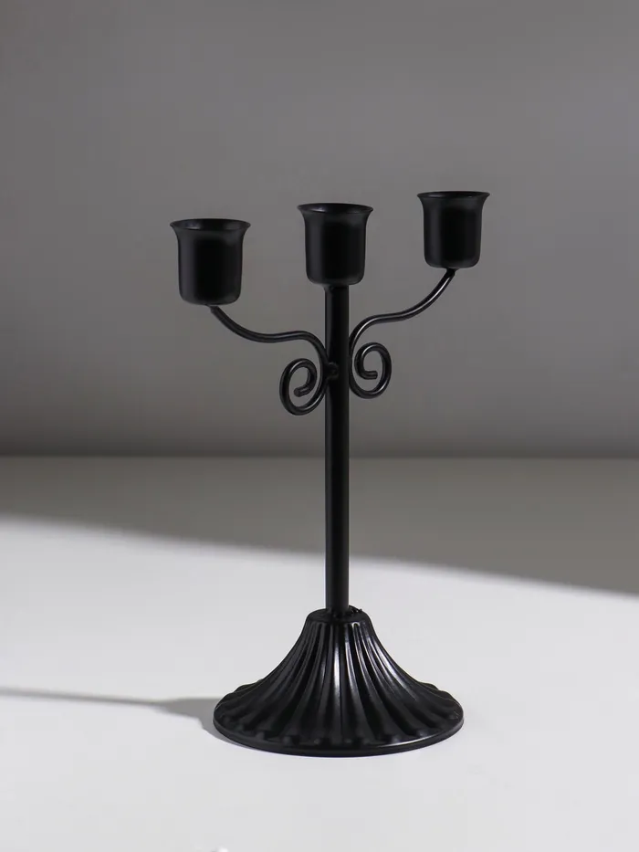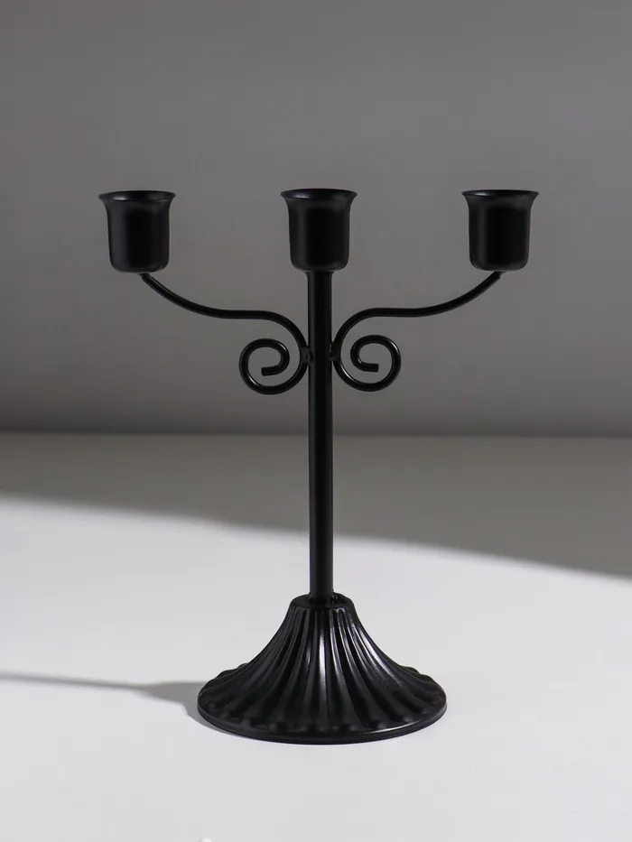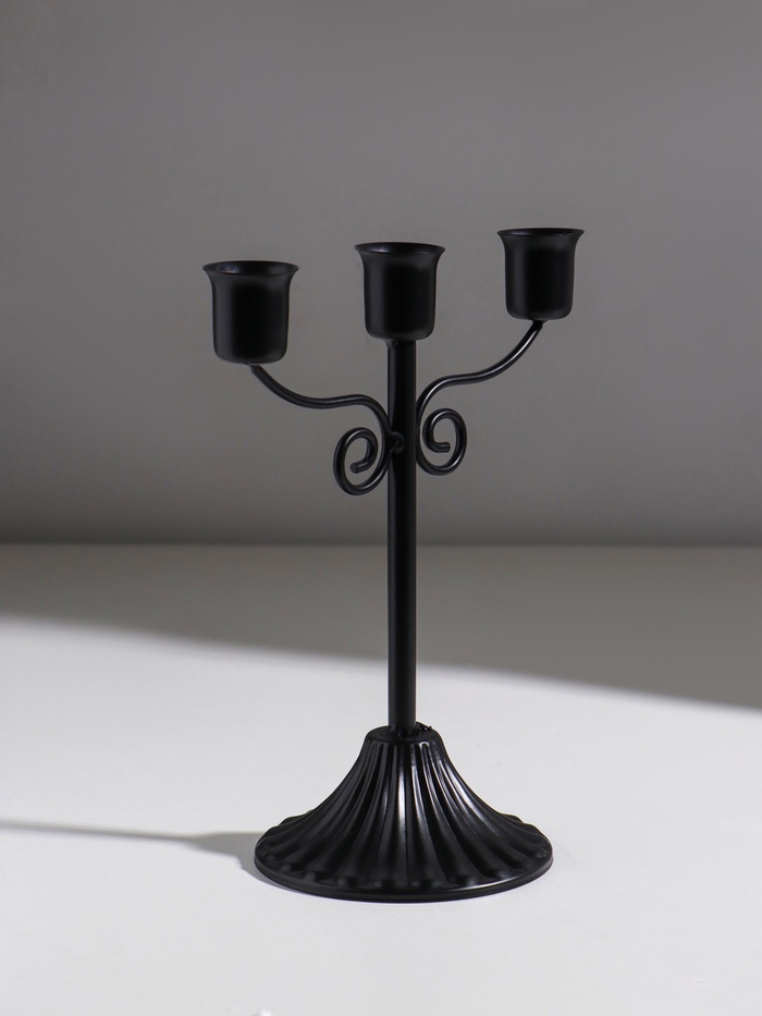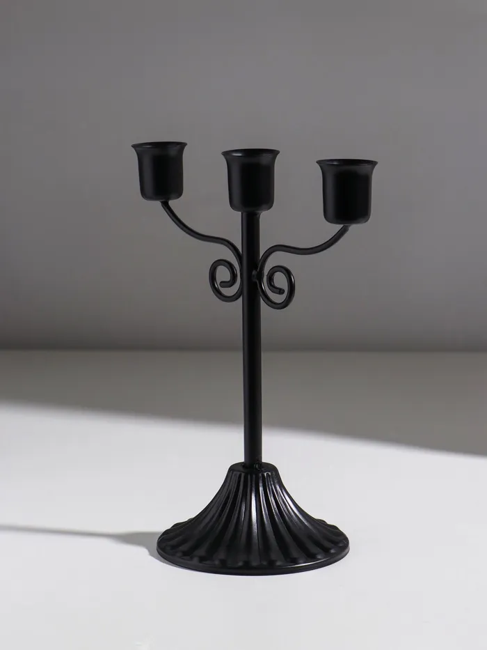 Подсвечник металл на 3 свечи "Классика с завитками" d=2,5 см чёрный 18х10х21 см