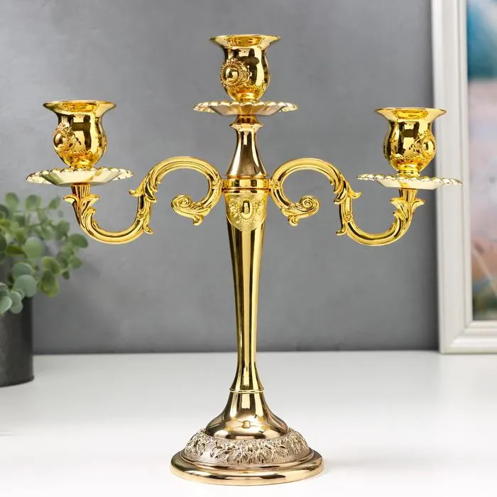 Подсвечник металл на 3 свечи "Медальон" золото 26х26х9,2 см — Характеристики