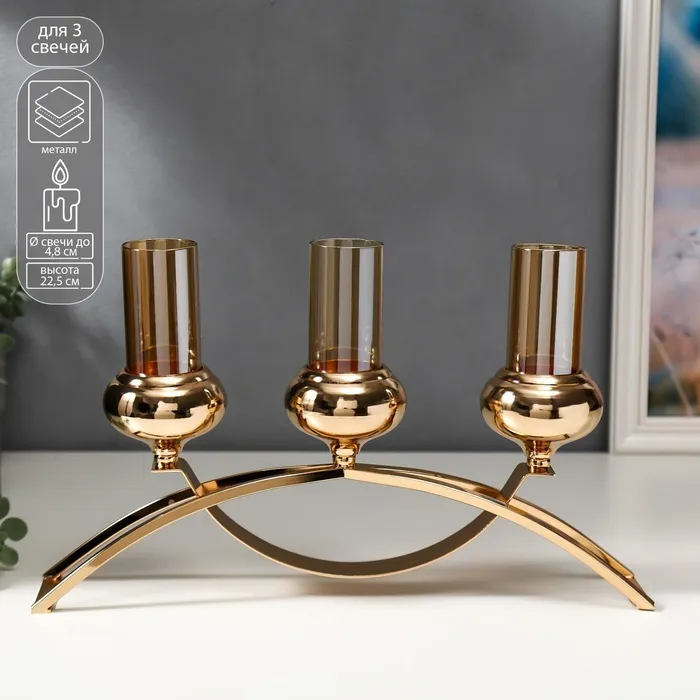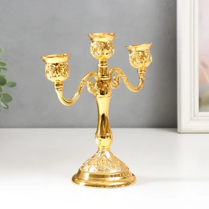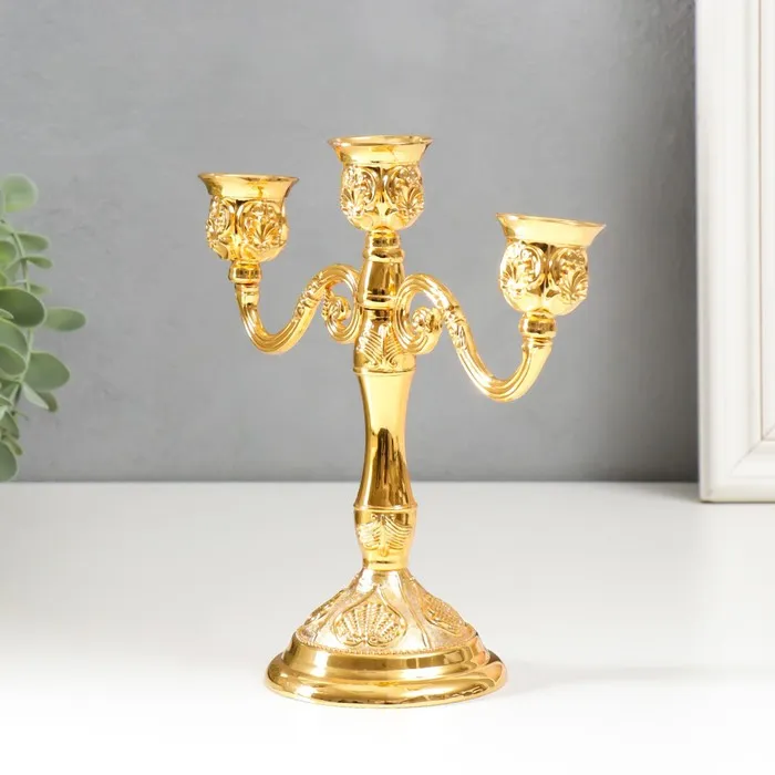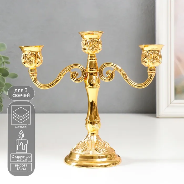 Подсвечник металл на 3 свечи "Резной лист" цвет золото 18х20,5х8,5 см — Характеристики