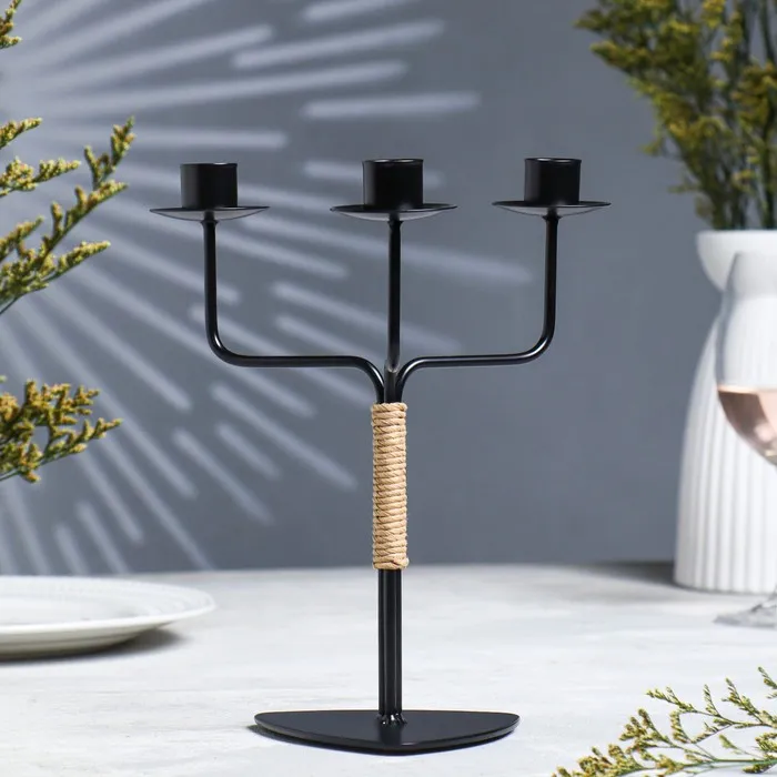 Подсвечник металл на 3 свечи "Шандал", 26,2х20,5 см, чёрный муар — Характеристики