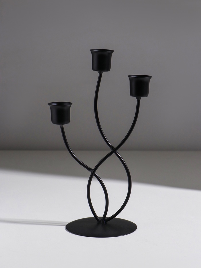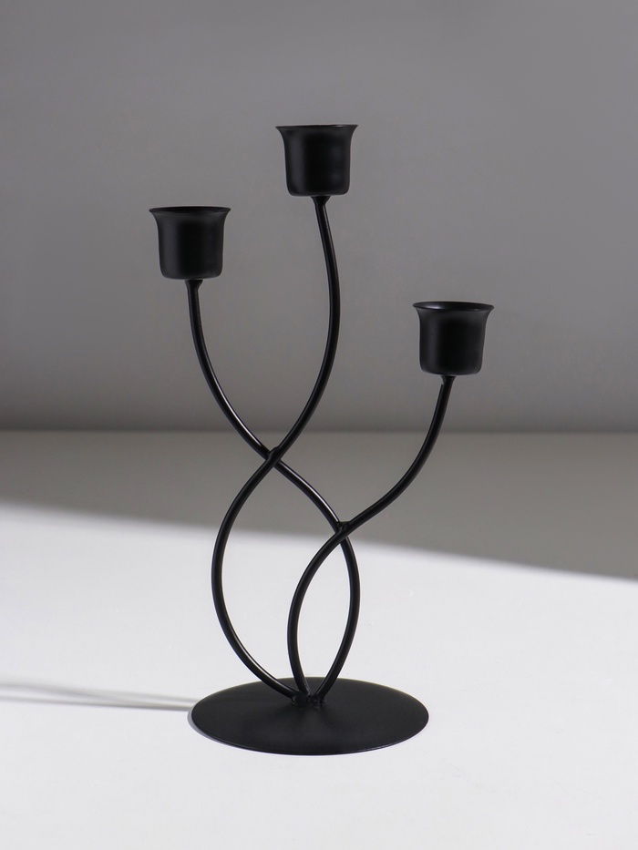 Подсвечник металл на 3 свечи "Водоросли" d=2,5 см чёрный 9х9х22,5 см