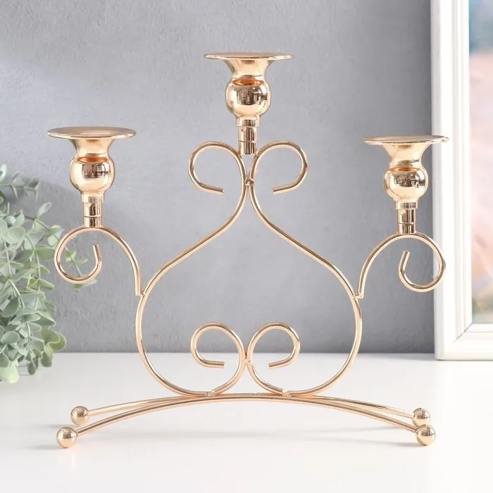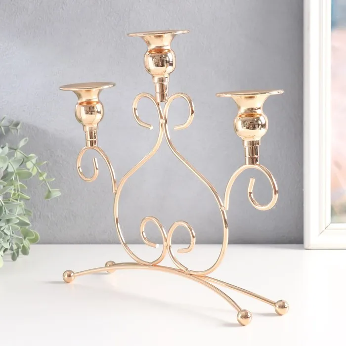 Подсвечник металл на 3 свечи "Завитки" d-2,5 см золото 27,5х9х25,6 см — Характеристики