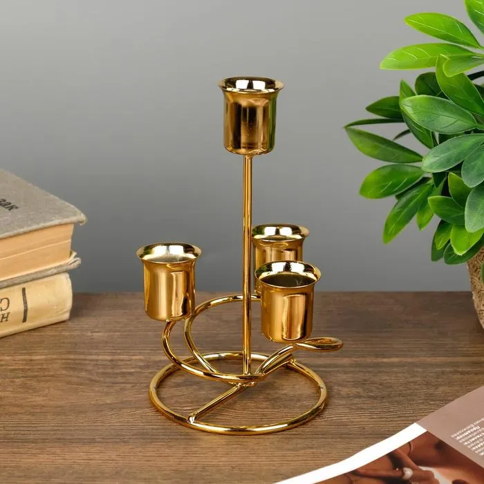 Подсвечник металл на 4 свечи "Спираль" золото 16х9х9 см — Характеристики
