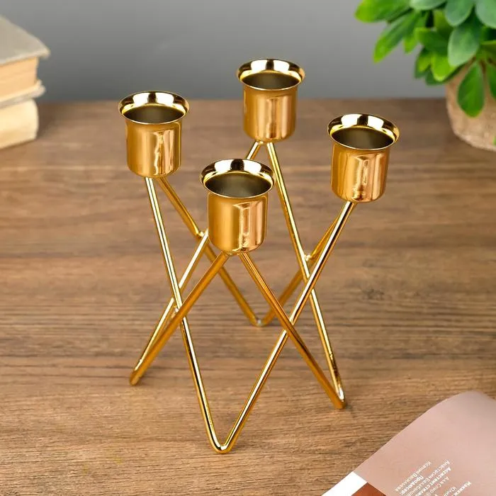 Подсвечник металл на 4 свечи "Треугольники" золото 14х9х9 см — Характеристики