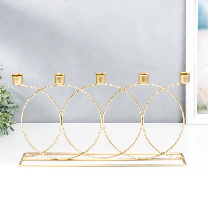 Подсвечник металл на 5 свечей "Окружности" золото 23х43 см — Характеристики
