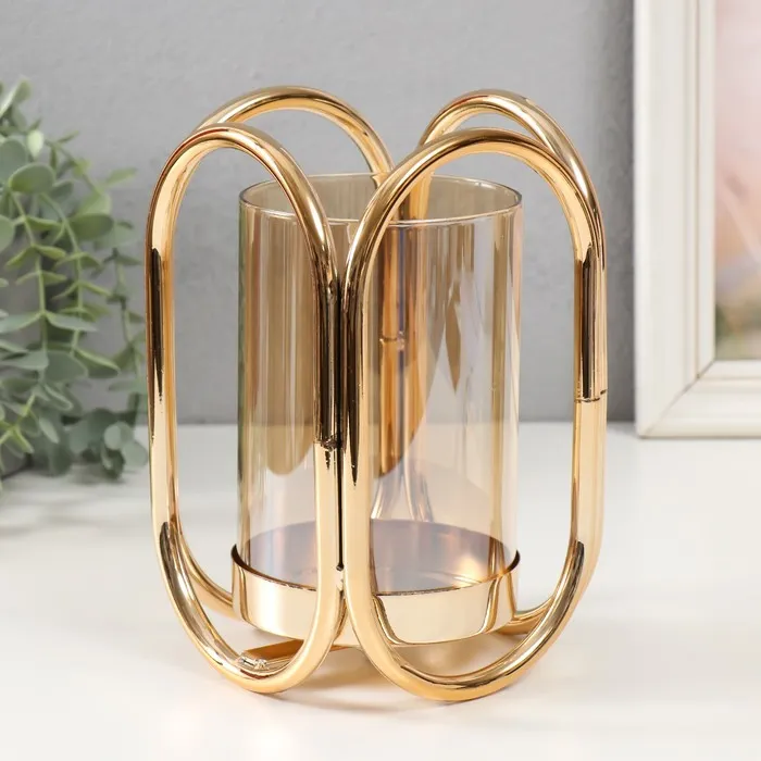 Подсвечник металл «Октавия», золото, d=9.5 см, 12.3×12.3×20 см — Характеристики