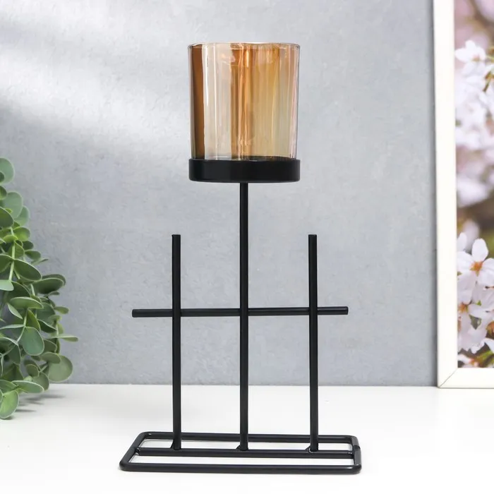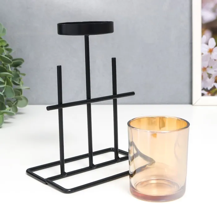 Подсвечник металл, стекло на 1 свечу "Аркана" d-5 см, чёрный 8,4х12,8х22,5 см — Характеристики