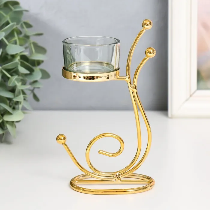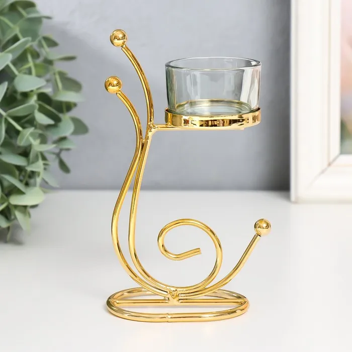 Подсвечник металл, стекло на 1 свечу "Изгибы. Шарики" d-4,5 см золото 9х6,5х15,5 см — Характеристики