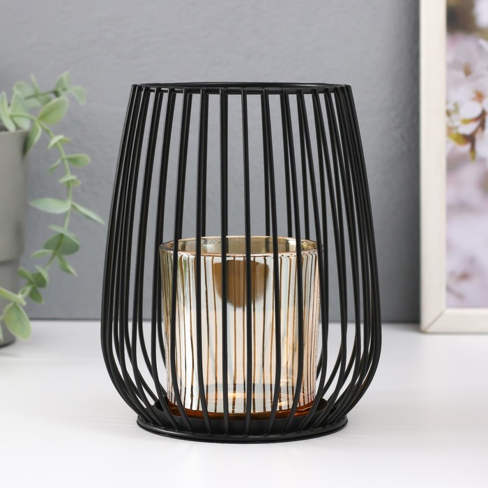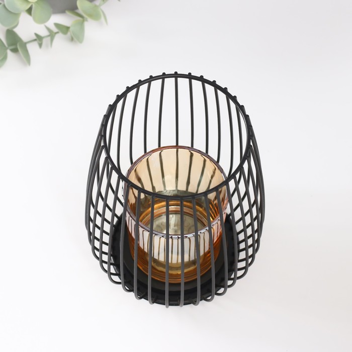 Подсвечник металл, стекло на 1 свечу "Корзина с закруглёнными углами" чёрный 15х12,5х12,5 см 54140