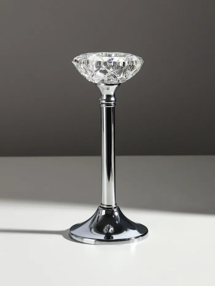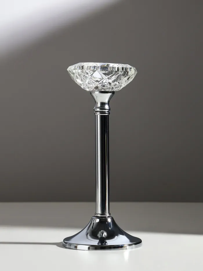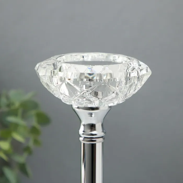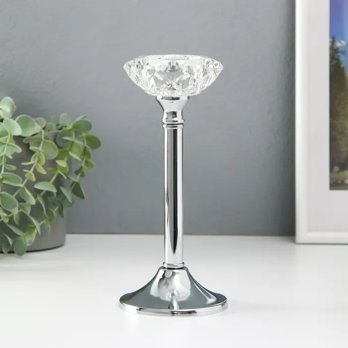 Подсвечник металл, стекло на 1 свечу «Кристальная чаша», d=5 см, серебро, 9×9×20.5 см — Характеристики