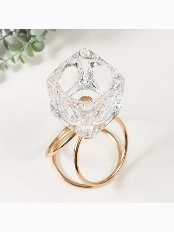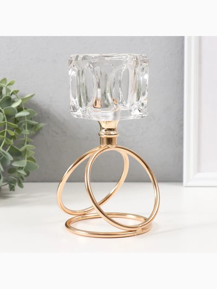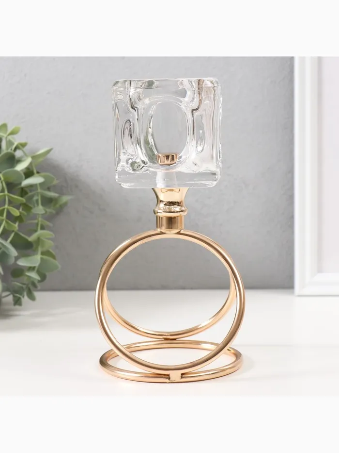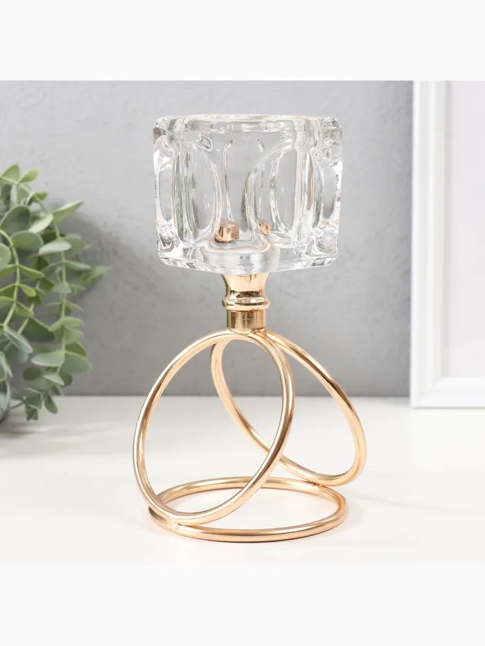 Подсвечник металл, стекло на 1 свечу «Ледяной кубик», d=6 см, золото, 10×10×19 см — Характеристики