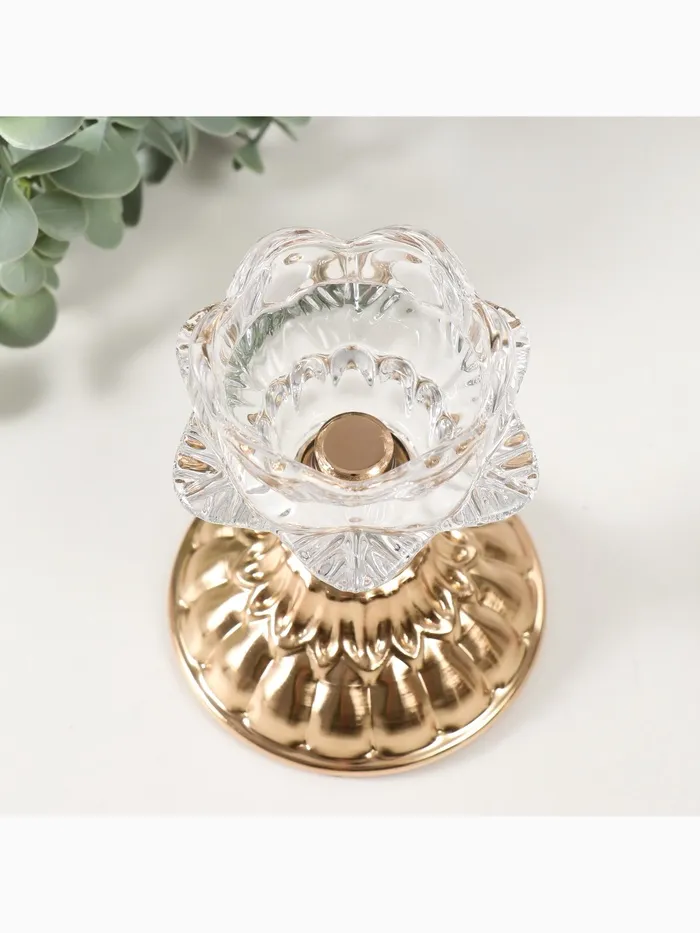 Подсвечник металл, стекло на 1 свечу «Ледяной цветок», d=5 см, золото, 8×8×12 см — Характеристики