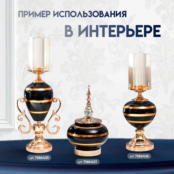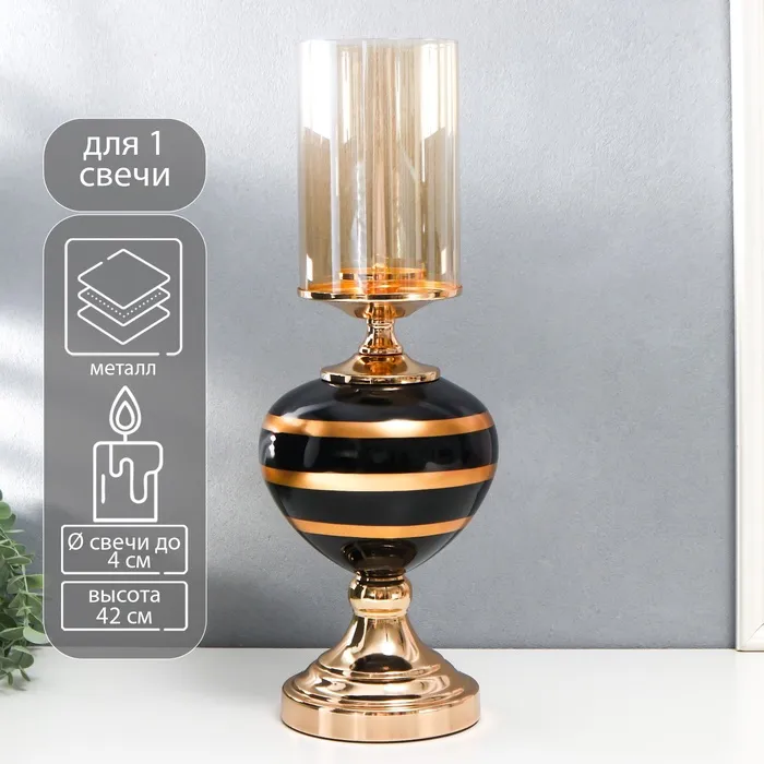Подсвечник металл, стекло на 1 свечу "Мираж" золото с чёрным 42х17х17 см — Характеристики