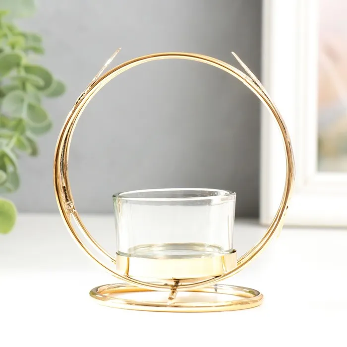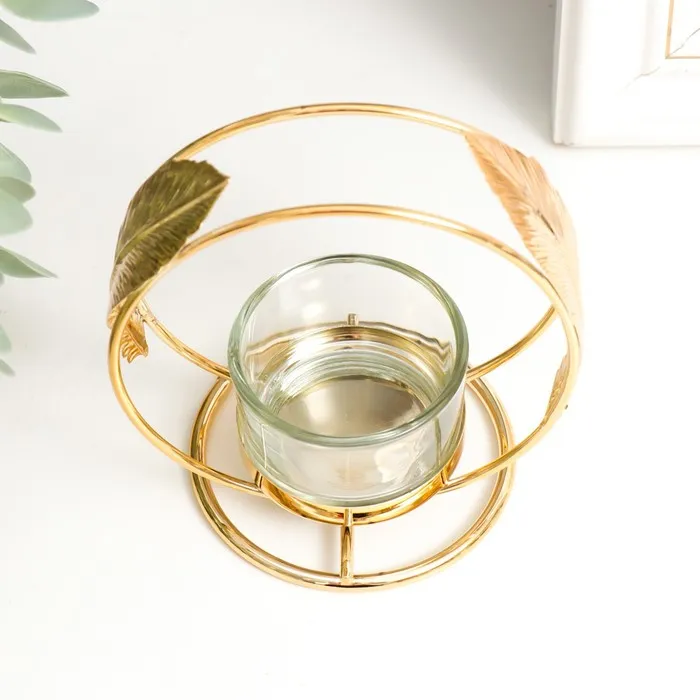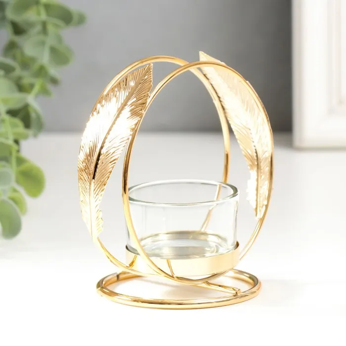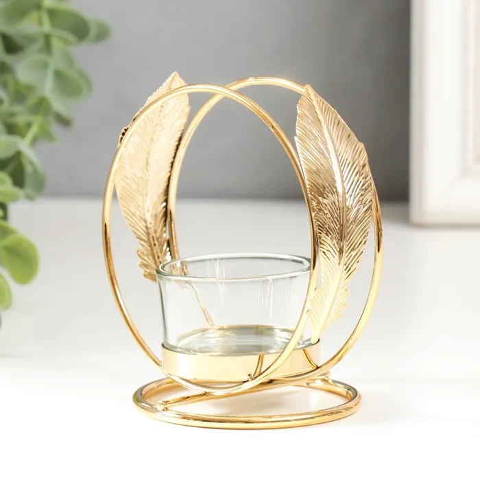 Подсвечник металл, стекло на 1 свечу «Пёрышки», d=4 см золото, 7.5×10×11 см — Характеристики