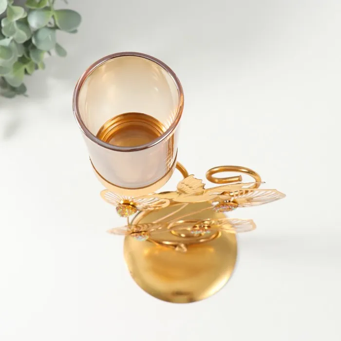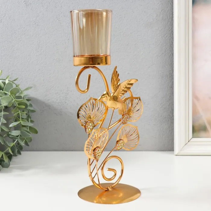 Подсвечник металл, стекло на 1 свечу «Полет колибри», d=4.7 см, золото, 15.5×9×27.8 см