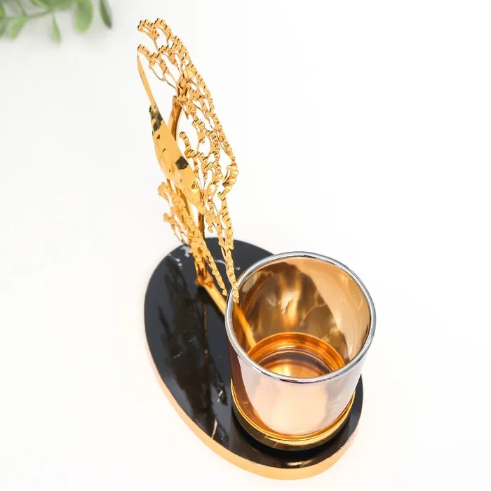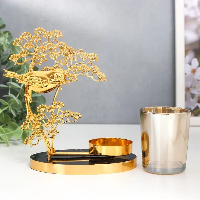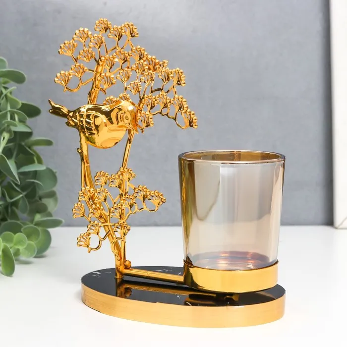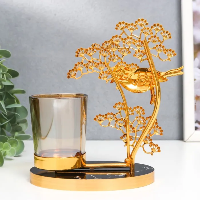 Подсвечник металл, стекло на 1 свечу «Птица на деревце», d=5 см, золото, 8×15×17.5 см — Характеристики