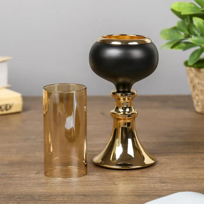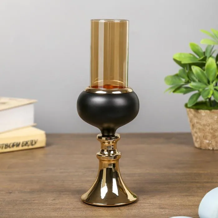 Подсвечник металл, стекло на 1 свечу "Тёмный рыцарь" чёрный матовый с золотом 21х7,5х7,5 см — Характеристики