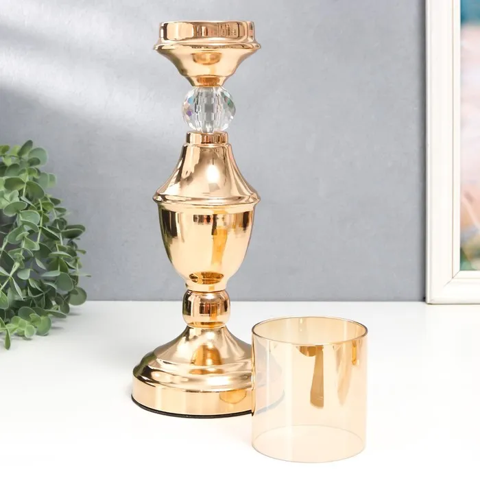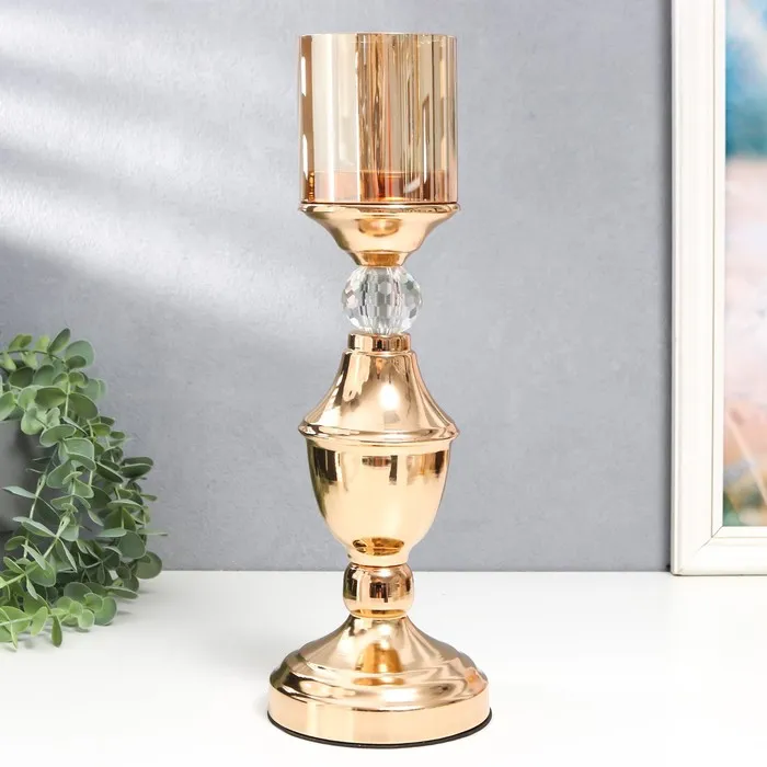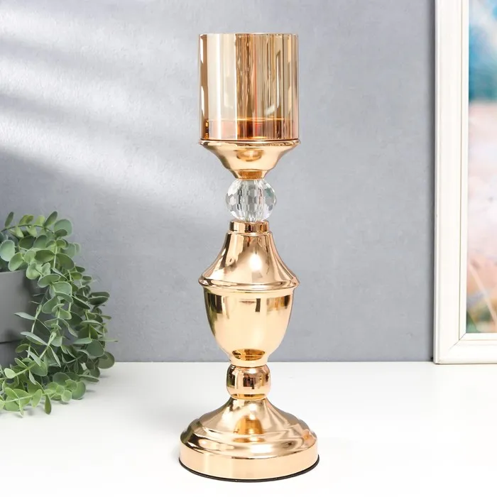 Подсвечник металл, стекло на 1 свечу "Тицино" d-6 см, золото 11,5х11,5х38 см — Характеристики