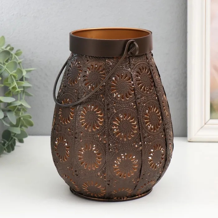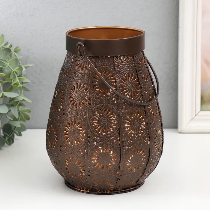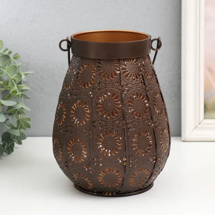 Подсвечник металл, стекло на 1 свечу "Цветы Востока" d=6,5 см коричнево-медный 16х19 см — Характеристики