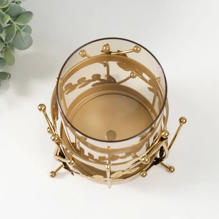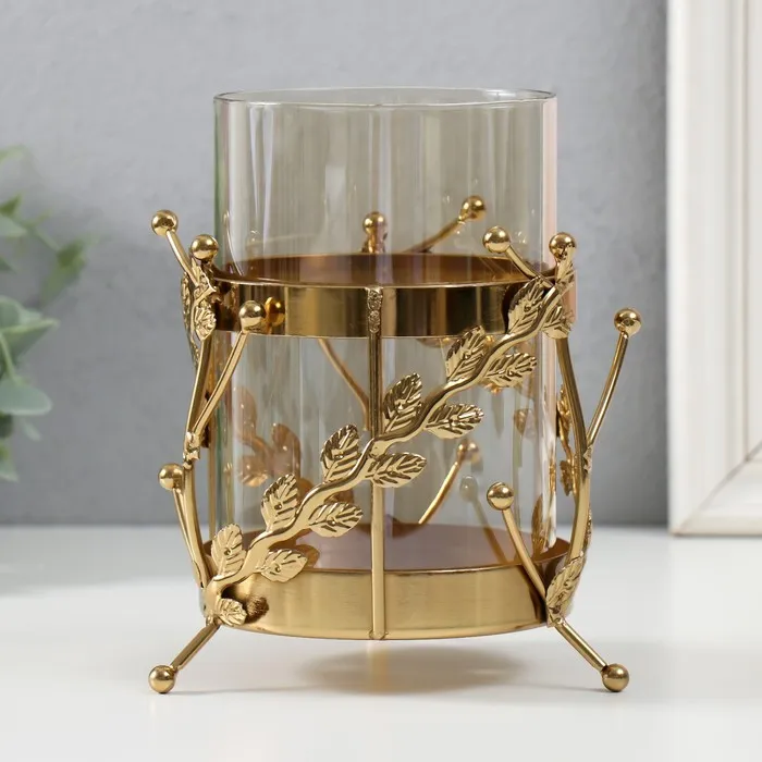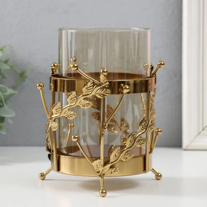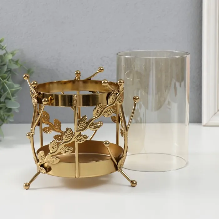 Подсвечник металл, стекло на 1 свечу «Веточки с шариками», d=10 см, золото, 14×17 см — Характеристики