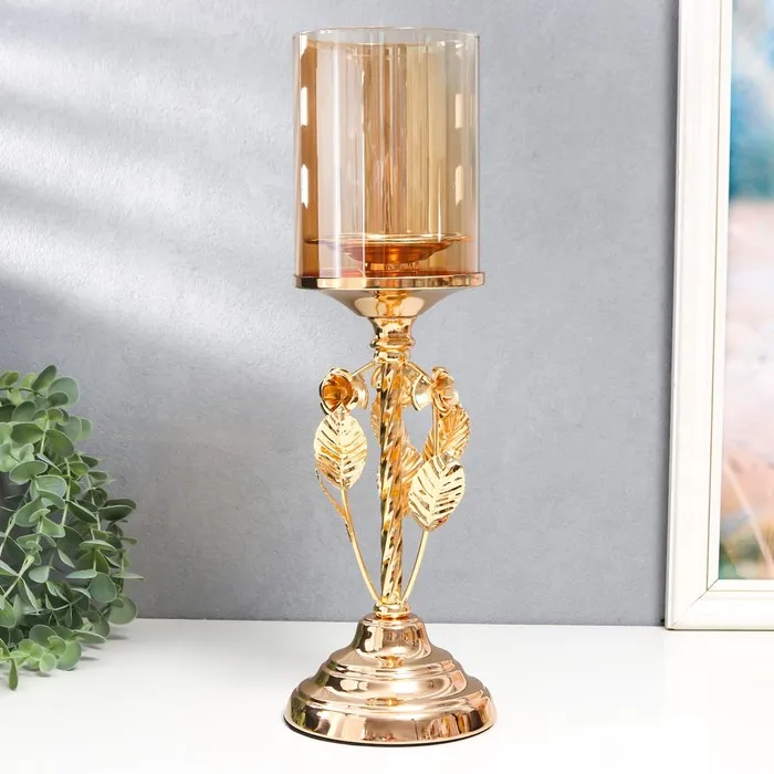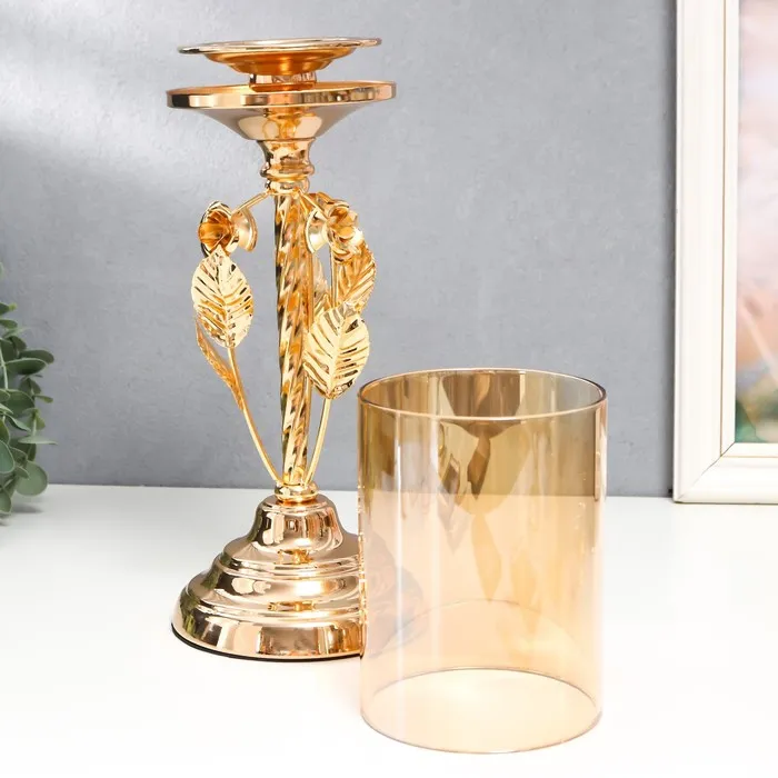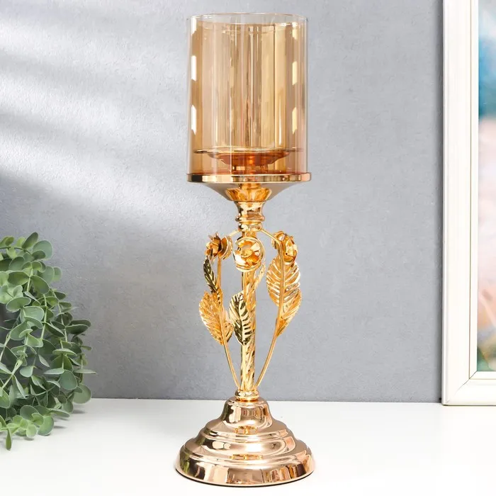 Подсвечник металл, стекло на 1 свечу "Вилас" d-8 см, золото 11,5х11,5х36,5 см — Характеристики