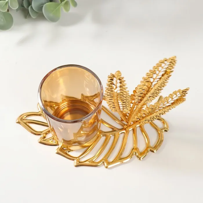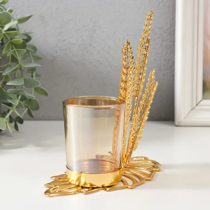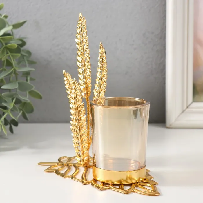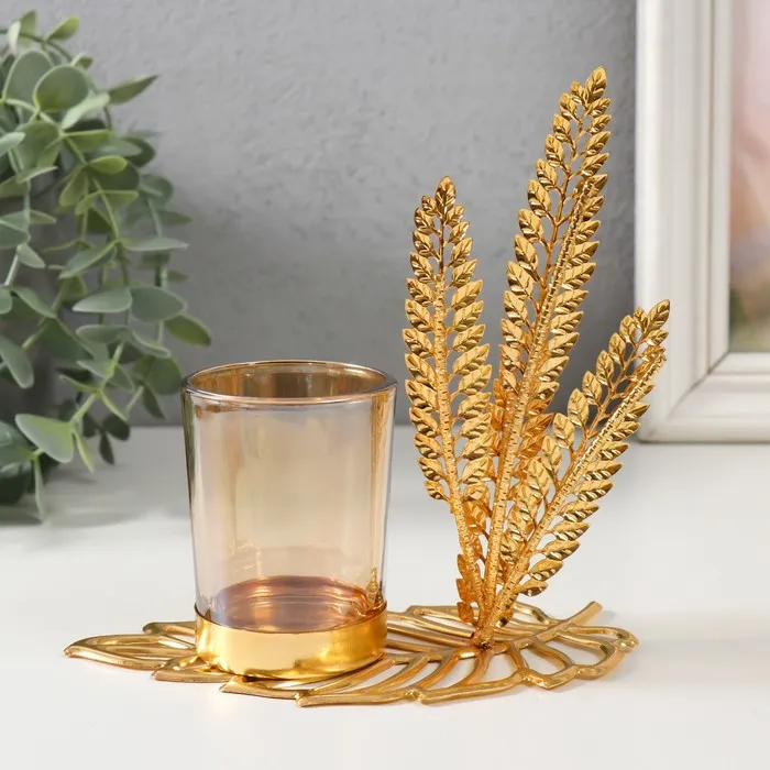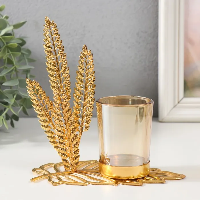 Подсвечник металл, стекло на 1 свечу «Высокие листы», d=4.7 см, золото, 14.8×8×15 см — Характеристики