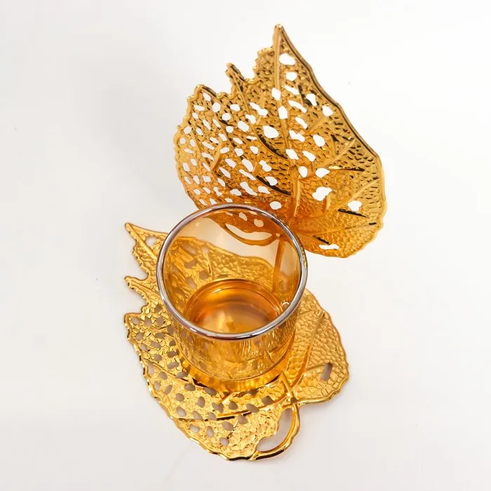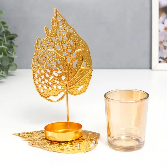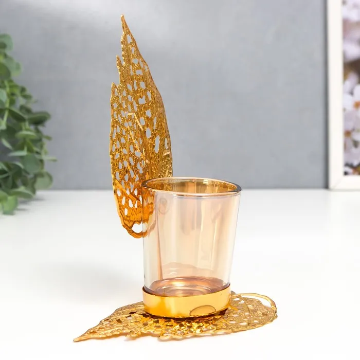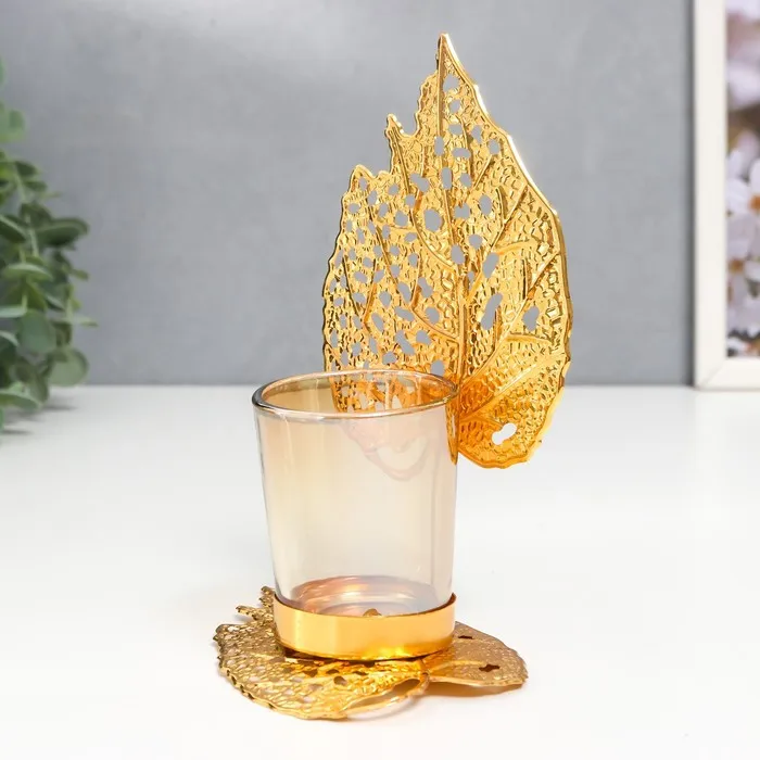 Подсвечник металл, стекло на 1 свечу "Золотые листики" d-5 см 8х12х16,5 см — Характеристики