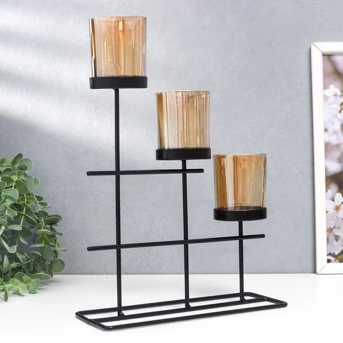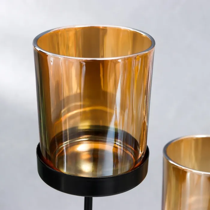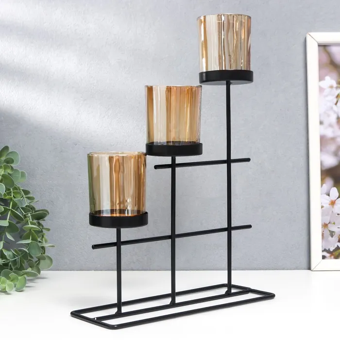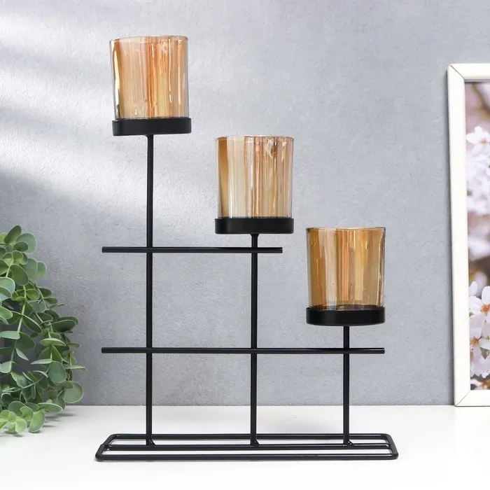 Подсвечник металл, стекло на 3 свечи "Этна" d-5 см, чёрный 7,5х23х31 см — Характеристики