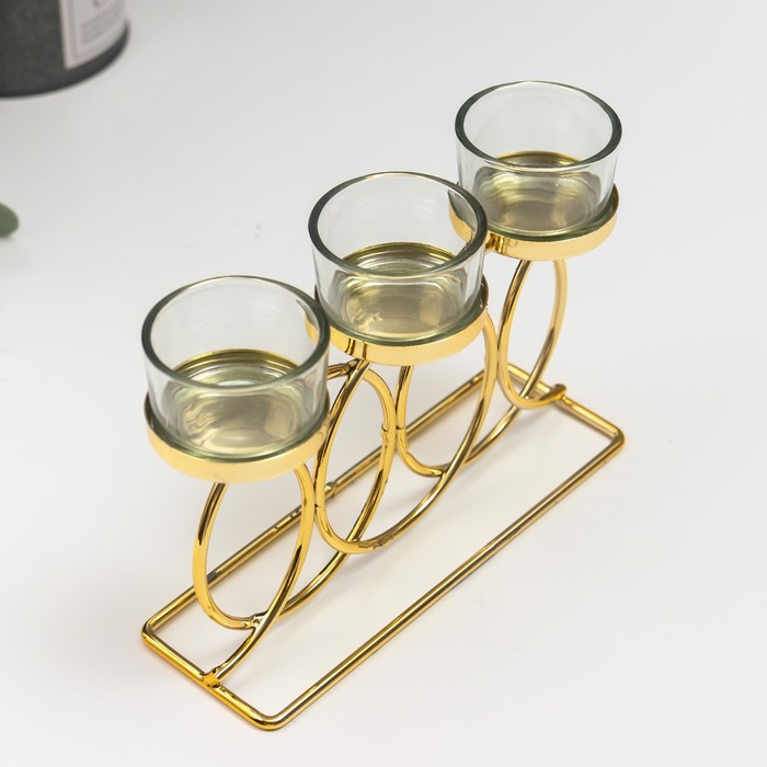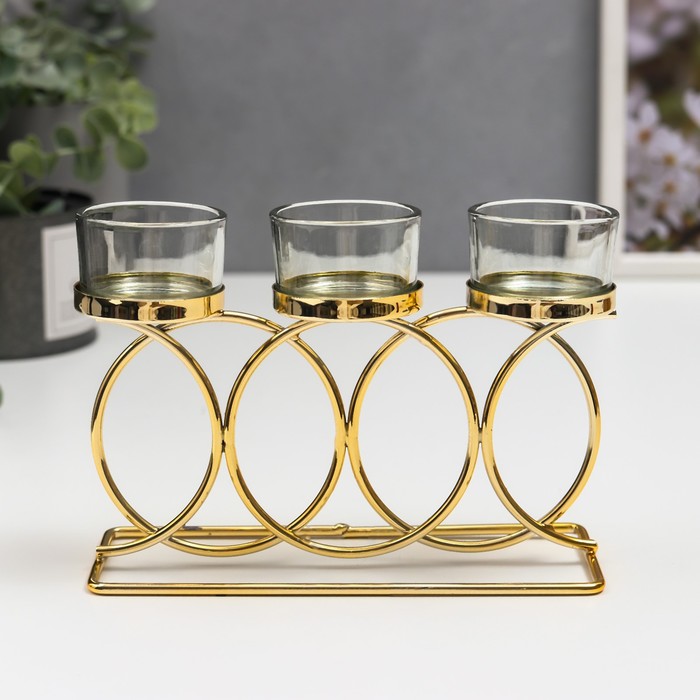 Подсвечник металл, стекло на 3 свечи "Сплетённые кольца" золото 18х6х10 см