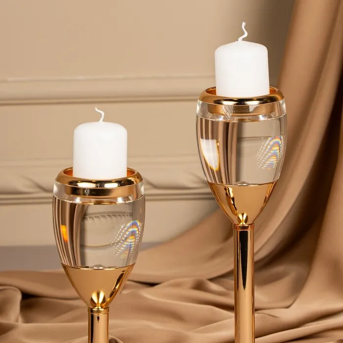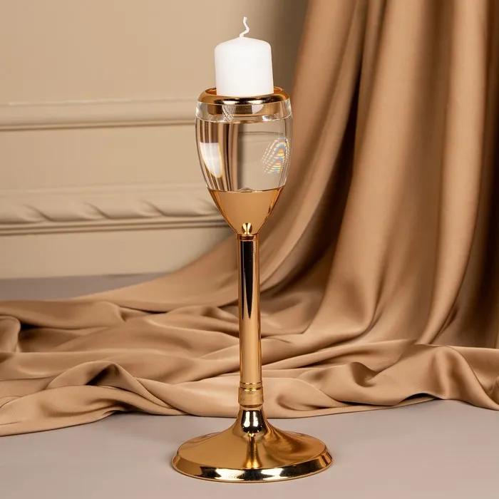 Подсвечник металлический «Безмятежность», стекло, на 1 свечу, цвет золото, 11×11×25.5 см — Характеристики