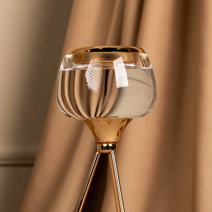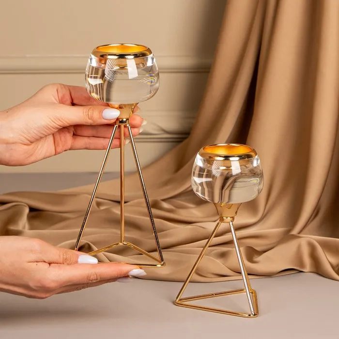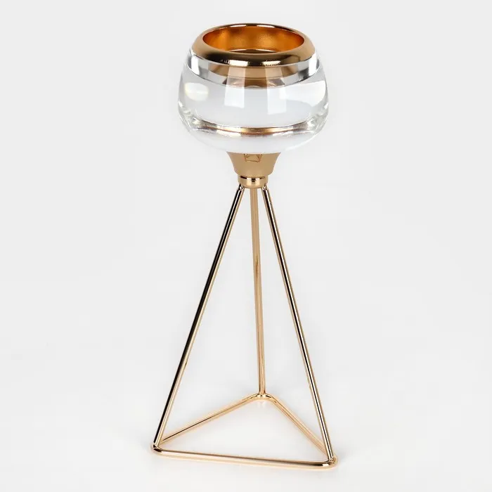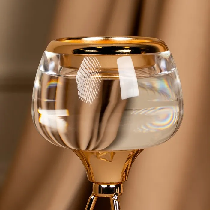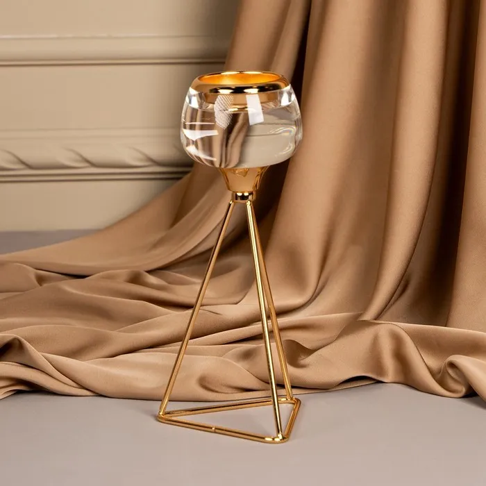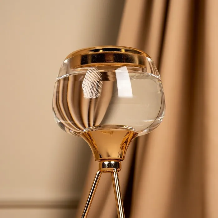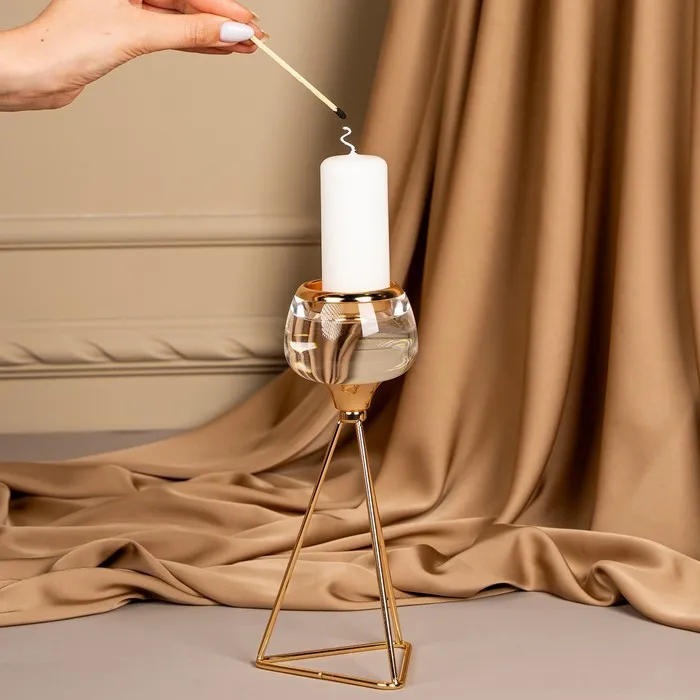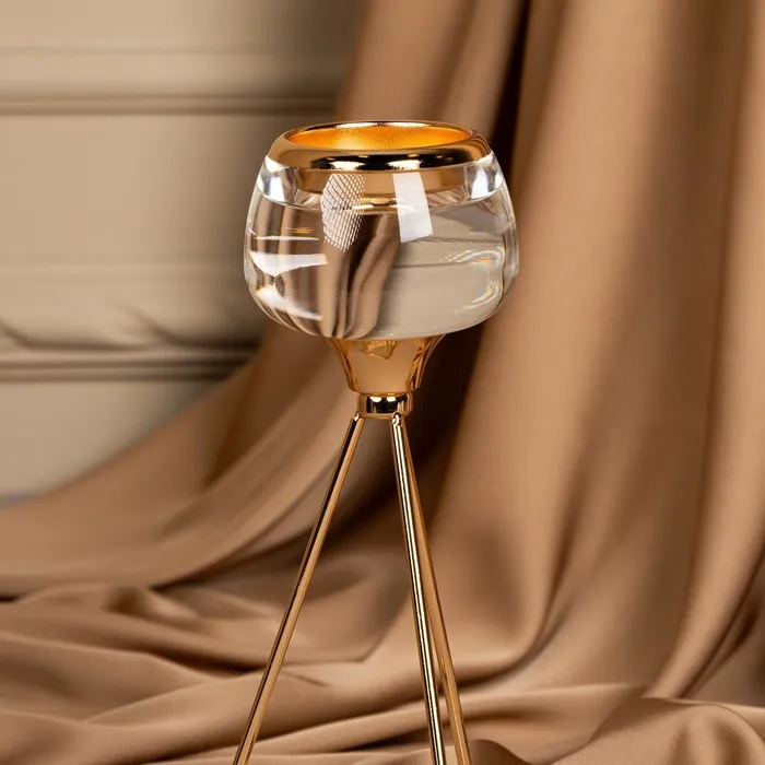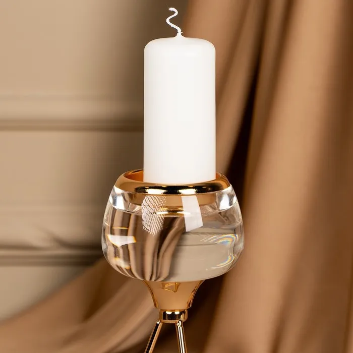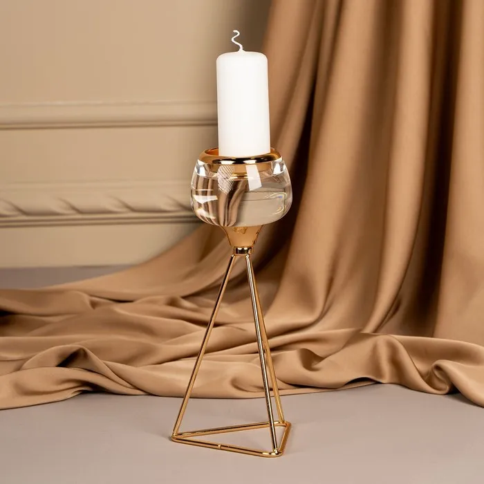 Подсвечник «Изысканность» – незаменимое украшения для дома, которое создаст атмосферу уюта и будет радовать каждого гостя красотой и эстетикой роскоши. Он состоит из прочного металла в золотом оттенке и изящного стекла. Размеры подсвечника: 9.5 х 9.5 х 22.5 см. делают его идеальным для размещения в любой части комнаты, а вес брутто: 320 гр. указывает на легкость товара. Такой аксессуар добавит шарма и прекрасно впишется в классический или винтажный стиль интерьера.