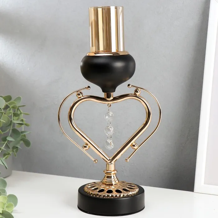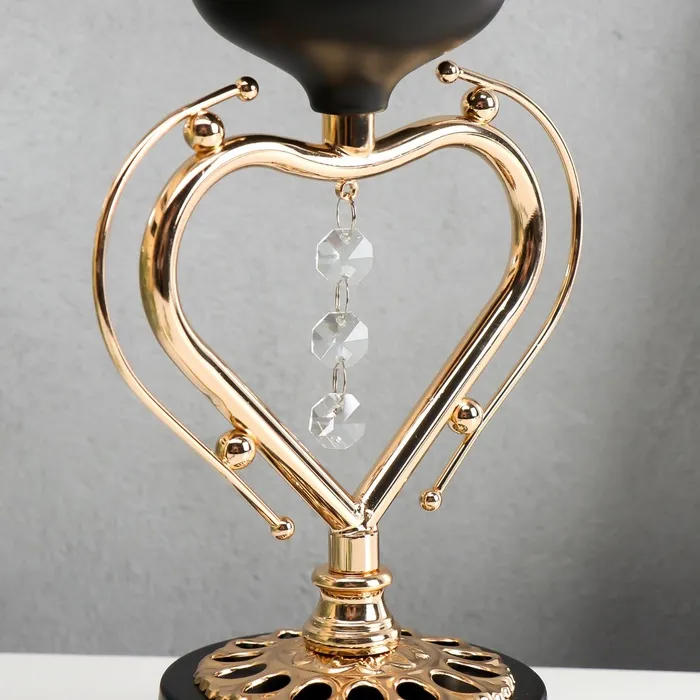 Подсвечник металлический на 1 свечу «Сердце», чёрный с золотом, 23×14.5×9.8 см — Характеристики