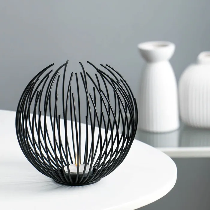 Отличительной особенностью этого подсвечника является его изысканное чёрное покрытие, которое придает изделию особый шик и роскошь. Универсальность данного элемента позволяет ему стать прекрасным акцентом в любом интерьере, будь то классический стиль, модерн или современный минимализм. Будь то рабочий стол, полка в гостиной или спальне, подсвечник будет выглядеть одинаково великолепно благодаря своему дизайну и качественному исполнению.