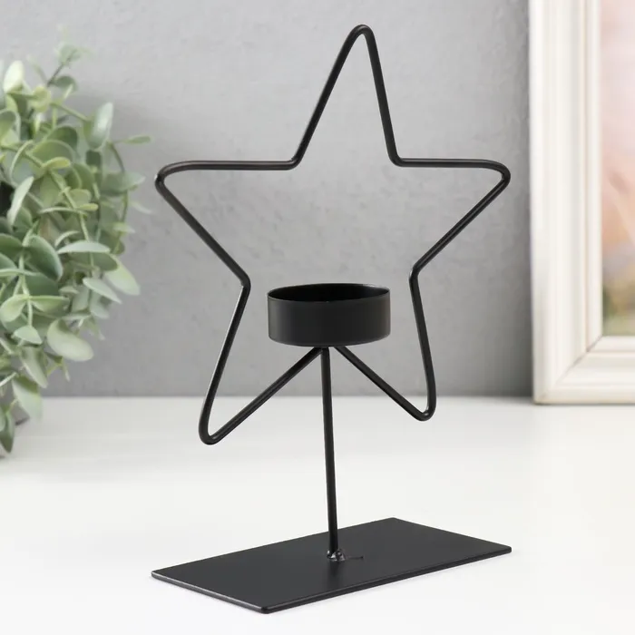 Подсвечник металлический на 1 свечу «Звезда», d=4 см, чёрный, 14.5×6×19.5 см — Характеристики