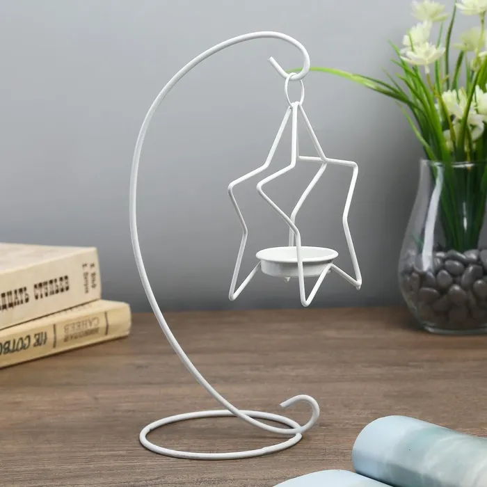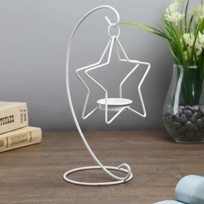Подсвечник металлический на 1 свечу «Звезда на дуге», белый, 20.5×10×10 см — Характеристики