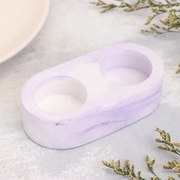 Подсвечник "Мрамор" из гипса для двух свечей овальный, 12х6х3см,мрамор с фиолетовыми полоск