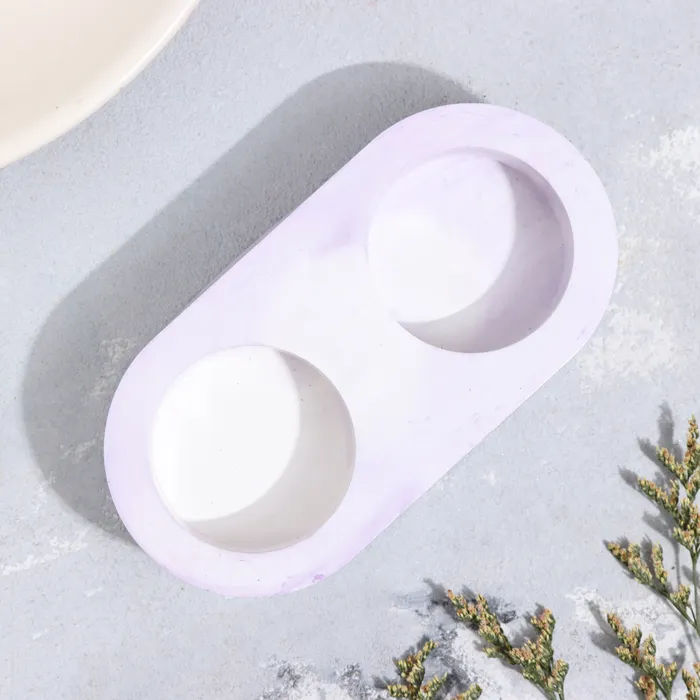Подсвечник "Мрамор" из гипса для двух свечей овальный, 12х6х3см,мрамор с фиолетовыми полоск — Характеристики