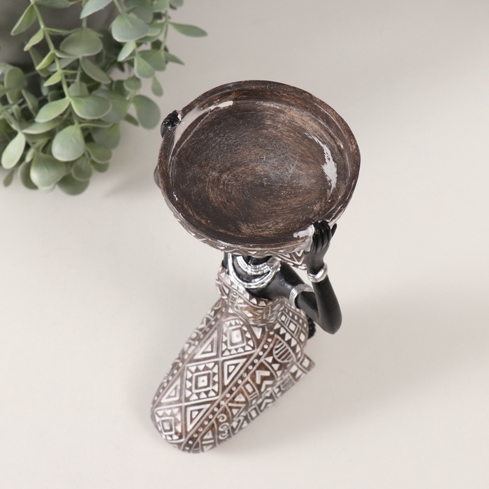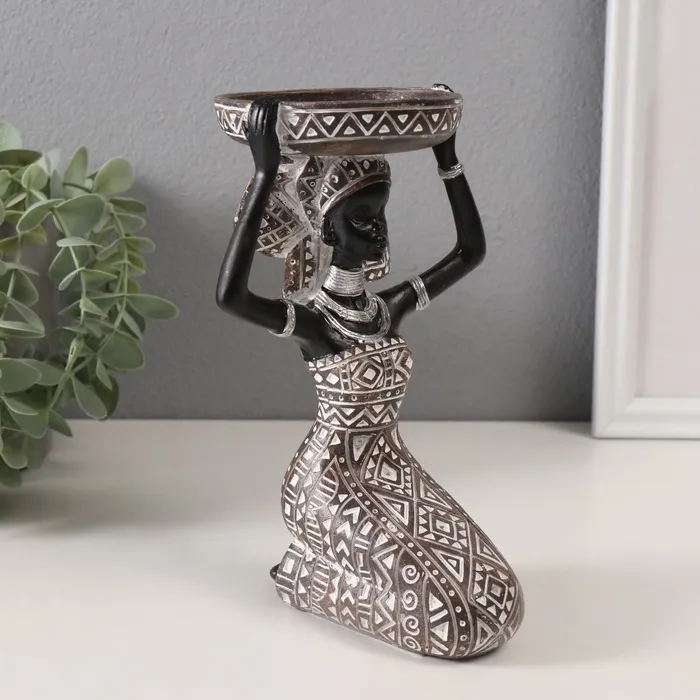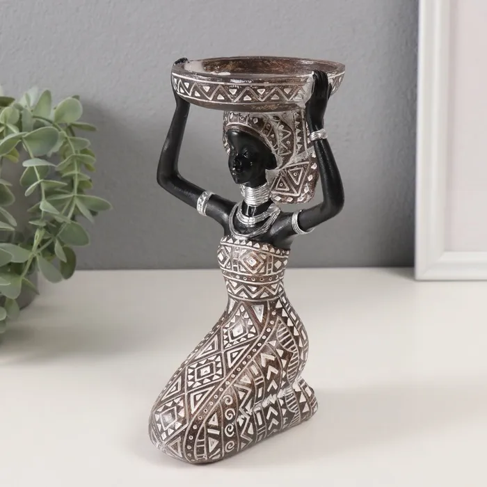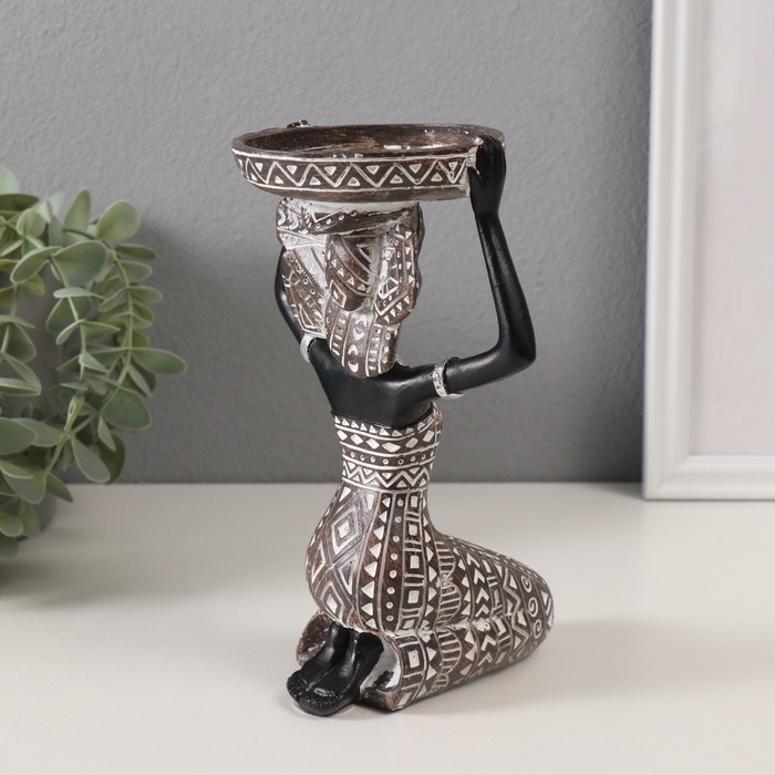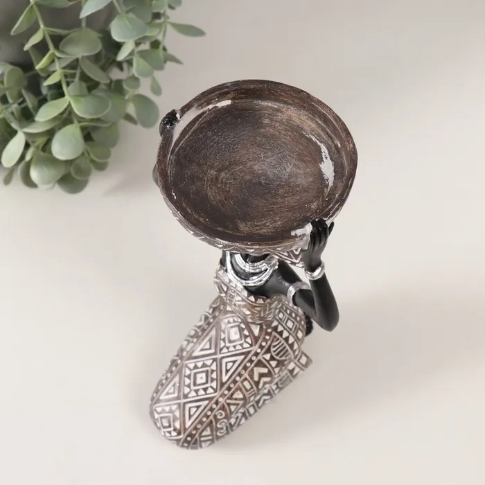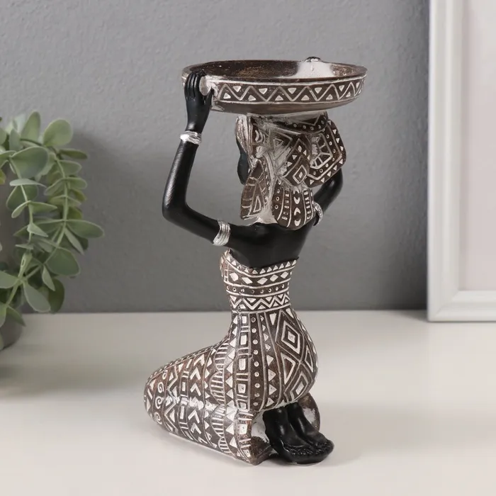 Подсвечник на 1 свечу «Африканка с блюдом на голове», белый с чёрным, 12×12.3×19 см — Характеристики
